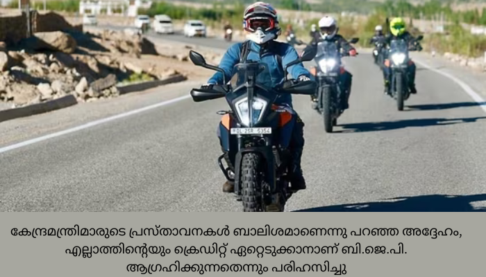 തൊട്ടുപിന്നാലെ കേന്ദ്ര പാര്ലമെന്ററികാര്യ മന്ത്രി പ്രഹ്ലാദ് ജോഷിയും രാഹുലിന്റെ യാത്രയെ അഭിനന്ദിച്ച് രംഗത്തെത്തി. ‘ആര്ട്ടിക്കിള് 370 പിന്വലിച്ചതിനുശേഷമുള്ള ലേയും ലഡാക്കും കാണാനും അതേക്കുറിച്ച് പ്രചരിപ്പിക്കാനും രാഹുല് ഗാന്ധി നേരിട്ട് കശ്മീര് താഴ്വരയിലേക്ക് ഒരു യാത്ര നടത്തിയിരിക്കുന്നു. അദ്ദേഹത്തിന്റെ യാത്രയുടെ നേര്ക്കാഴ്ചകള് കണ്ട് ഞങ്ങളും ആഹ്ലാദിക്കുന്നു’- പ്രഹ്ലാദ് ജോഷി എക്സില് കുറിച്ചു.അതേസമയം, ബി.ജെ.പിയുടെ അവകാശവാദങ്ങള് ഖണ്ഡിച്ച് കോണ്ഗ്രസ് വക്താവ് പവന് ഖേര രംഗത്തെത്തി. രാഹുല് ഗാന്ധി സഞ്ചരിച്ച റോഡിന്റെ ടെന്ഡര് സംബന്ധിച്ച വിവരങ്ങള് വെളിപ്പെടുത്താന് പവന് ഖേര ബി.ജെ.പിയെ വെല്ലുവിളിച്ചു. 2014-ന് മുമ്പ് ലഡാക്കില് ചിത്രീകരിച്ച ഹിന്ദി സിനിമകളില് അവിടത്തെ മികച്ച റോഡുകള് കാണാമെന്നും അദ്ദേഹം ചൂണ്ടിക്കാട്ടി. കേന്ദ്രമന്ത്രിമാരുടെ പ്രസ്താവനകള് ബാലിശമാണെന്നു പറഞ്ഞ അദ്ദേഹം, എല്ലാത്തിന്റെയും ക്രെഡിറ്റ് ഏറ്റെടുക്കാനാണ് ബി.ജെ.പി. ആഗ്രഹിക്കുന്നതെന്നും പരിഹസിച്ചു.ലേയില്നിന്ന് പാംഗോങ്ങിലേക്കുള്ള രാഹുല് ഗാന്ധിയുടെ ബൈക്ക് യാത്ര വൈറലായിരുന്നു. ഇതിനു പിന്നാലെയാണ് അവിടത്തെ റോഡുകള് ബി.ജെ.പി. ഭരണകാലത്ത് നിര്മിച്ചതാണെന്ന അവകാശവാദവുമായി കേന്ദ്രമന്ത്രിമാര് രംഗത്തെത്തിയത്.