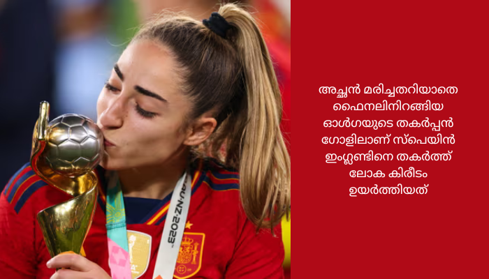 അച്ഛന് മരിച്ചതറിയാതെ ഫൈനലിനിറങ്ങിയ ഓള്ഗയുടെ തകര്പ്പന് ഗോളിലാണ് സ്പെയിന് ഇംഗ്ലണ്ടിനെ തകര്ത്ത് ലോക കിരീടം ഉയര്ത്തിയത്. കിരീടവിജയാഘോഷങ്ങള്ക്കിടെയാണ് ഓള്ഗയെ അച്ഛന്റെ മരണവാര്ത്ത അറിയിച്ചത്.