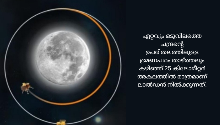 ലോകം മുഴുവൻ കാത്തിരിക്കുന്ന ചന്ദ്രയാൻ മൂന്നിന്റെ സോഫ്റ്റ് ലാൻഡിം​ഗ് നാളെ വൈകിട്ട് 6.04ന് നടക്കും. വൈകിട്ട് 5.30 മുതൽ 8 മണി വരെയെന്ന സമയമാണ് ആദ്യ ഘട്ടത്തിൽ ഐഎസ്ആർഒ അറിയിച്ചിരുന്നതെങ്കിലും പിന്നീട് 6.04 എന്ന കൃത്യമായ സമയം അറിയിക്കുകയായിരുന്നു. ഏറ്റവും ഒടുവിലത്തെ ചന്ദ്രന്റെ ഉപരിതലത്തിലുള്ള ഭ്രമണപഥം താഴ്ത്തലും കഴിഞ്ഞ് 25 കിലോമീറ്റർ അകലത്തിൽ മാത്രമാണ് ലാൽഡൻ നിൽക്കുന്നത്.