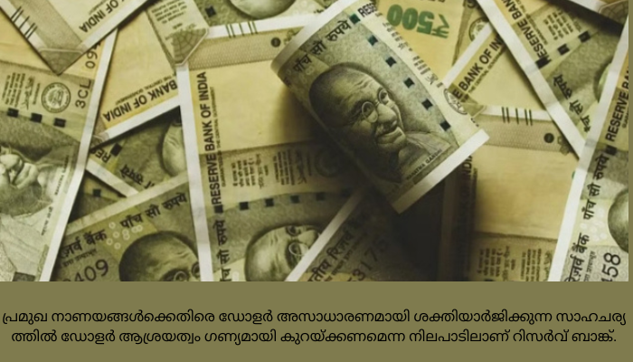കൊ​ച്ചി: രാ​ജ്യാ​ന്ത​ര വ്യാ​പാ​ര ഇ​ട​പാ​ടു​ക​ൾ പ​ര​മാ​വ​ധി പ്രാ​ദേ​ശി​ക നാ​ണ​യ​ങ്ങ​ളി​ൽ സെ​റ്റി​ൽ​മെ​ന്‍റ് ന​ട​ത്താ​ൻ റി​സ​ർ​വ് ബാ​ങ്ക് വാ​ണി​ജ്യ ബാ​ങ്കു​ക​ൾ​ക്ക് നി​ർ​ദേ​ശം ന​ൽ​കി. ലോ​ക​ത്തി​ലെ പ്ര​മു​ഖ നാ​ണ​യ​ങ്ങ​ൾ​ക്കെ​തി​രെ ഡോ​ള​ർ അ​സാ​ധാ​ര​ണ​മാ​യി ശ​ക്തി​യാ​ർ​ജി​ക്കു​ന്ന സാ​ഹ​ച​ര്യ​ത്തി​ൽ ഡോ​ള​ർ ആ​ശ്ര​യ​ത്വം ഗ​ണ്യ​മാ​യി കു​റ​യ്ക്ക​ണ​മെ​ന്ന നി​ല​പാ​ടി​ലാ​ണ് റി​സ​ർ​വ് ബാ​ങ്ക്.