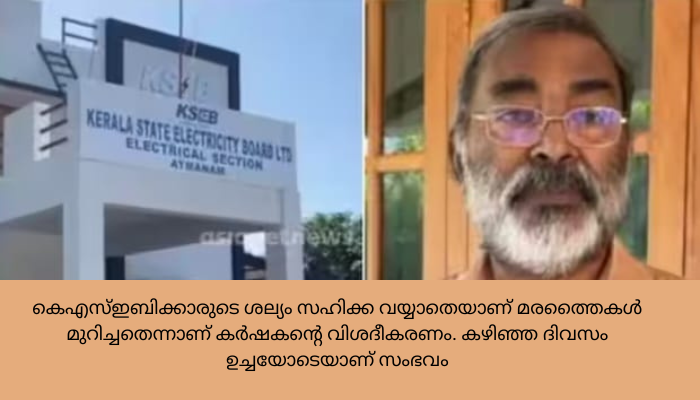 ഒന്നര ആഴ്ച മുൻപാണ് ടച്ചിംഗ് വെട്ടുന്നതിന്റെ ഭാഗമായി കെഎസ്ഇബി ജീവനക്കാർ സേവ്യറിന്റെ വീട്ടു പരിസരത്തെത്തിയത്. ഈ സമയം സേവ്യർ വീട്ടിൽ ഉണ്ടായിരുന്നില്ല. ലൈനിൽ മുട്ടുന്ന തരത്തിൽ നിന്ന എട്ടു വാഴക്കൈകളും ഏതാനും ഓല മടലുകളും അന്ന് കെഎസ്ഇബി ജീവനക്കാർ വെട്ടിമാറ്റിയിരുന്നു. ഇതിൽ പ്രതിഷേധിച്ചാണ് സേവ്യർ അയ്മനം കെഎസ്ഇബി ഓഫീസിലെത്തി മാവിൻ തൈകളും പ്ലാവിൻ തൈകളും വെട്ടിയത്.