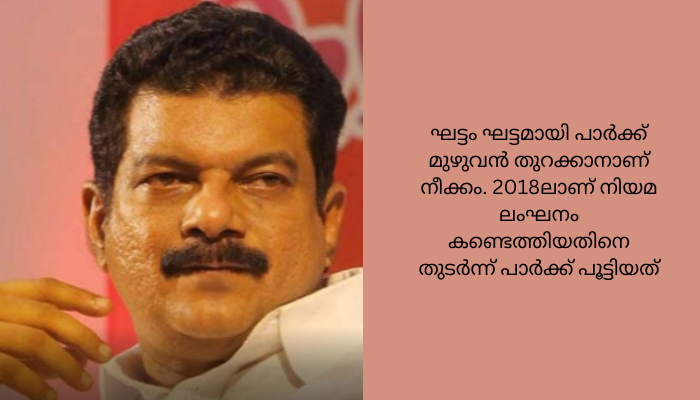 തിരുവനന്തപുരം: പി വി അന്വര് എംഎല്എയുടെ പാര്ക്ക് തുറക്കാന് സര്ക്കാര് അനുമതി. പാര്ക്ക് ഭാഗികമായി തുറക്കാനാണ് അനുമതി നല്കിയത്. ആദ്യം കുട്ടികളുടെ പാര്ക്കും പുല്മേടും തുറന്ന് നല്കും. ഘട്ടം ഘട്ടമായി പാര്ക്ക് മുഴുവന് തുറക്കാനാണ് നീക്കം. 2018ലാണ് നിയമ ലംഘനം കണ്ടെത്തിയതിനെ തുടർന്ന് പാർക്ക് പൂട്ടിയത്.