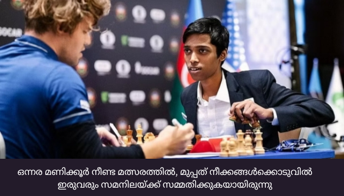 ബാകു (ഇന്തോനേഷ്യ): ചന്ദ്രയാൻ-3 ദൗത്യത്തിന്റെ ഭാഗമായ പ്രജ്ഞാൻ റോവർ ചന്ദ്രോപരിതലത്തിൽ ഇറങ്ങിക്കഴിഞ്ഞു. എന്നാൽ, ഇന്ത്യയുടെ കൗമാര ഗ്രാൻഡ് മാസ്റ്റർ ആർ. പ്രജ്ഞാനന്ദയ്ക്ക് ലോക ചെസ് കിരീടം തൊടാവുന്ന ദൂരത്തെത്തിയിട്ടേയുള്ളൂ.