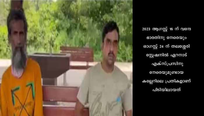 ആഗസ്റ്റ് 16 ന് തിരുവനന്തപുരത്തേക്ക് പോവുകയായിരുന്ന വന്ദേ ഭാരതിനു നേരെ കല്ലെറിഞ്ഞ പ്രതി മാഹിയിൽ വച്ചാണ് പിടിയിലായത്. മലപ്പുറം കൊണ്ടോട്ടി സ്വദേശി സൈബീസ് ആണ് അറസ്റ്റിലായത്. തലശ്ശേരി കോടതിയിൽ ഹാജരാക്കിയ പ്രതിയെ റിമാൻഡ് ചെയ്തു. ഓഗസ്റ്റ് 24 ന് തലശ്ശേരി സ്റ്റേഷനിാലയിരുന്നു മാറ്റൊരു സംഭവം. രാവിലെ 10.30 -ഓടെ തലശ്ശേരിയിലെത്തിയ ഏറനാട് എക്സ്പ്രസിനു നേരെയും കല്ലേറുണ്ടായി.