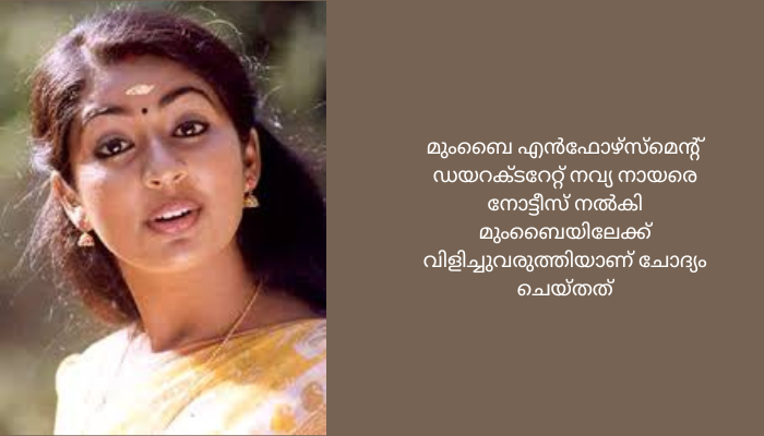 മുംബൈയിൽ രജിസ്റ്റർ ചെയ്ത കള്ളപ്പണം വെളുപ്പിക്കൽ കേസുമായി ബന്ധപ്പെട്ട് .ചലച്ചിത്ര താരം നവ്യ നായരെ ചോദ്യം ചെയ്ത് ഇ.ഡി