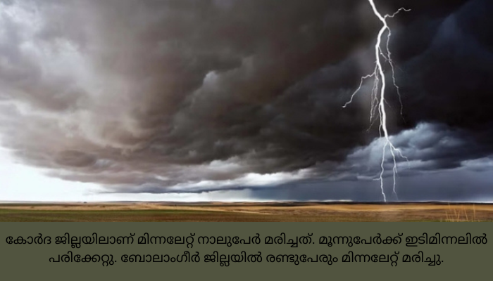 അങ്കുല്‍, ബൗധ്, ജഗത്സിങ്പൂര്‍, ധേങ്കനാല്‍ എന്നീ ജില്ലകളില്‍ ഒരാള്‍ വീതവും മിന്നലേറ്റ് മരിച്ചതായി ഒഡീഷ സ്‌പെഷല്‍ റിലീഫ് കമ്മീഷണര്‍ അറിയിച്ചു.
