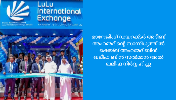 ബഹ്റൈൻ : ലുലു എക്സ്ചേഞ്ചിന്റെ 18-ാമത്തെ ശാഖ ബഹ്റൈനിൽ പ്രവർത്തനം ആരംഭിച്ചു. 2023 സെപ്തംബർ 4ന് രാവിലെ മനാമയിലെ അൽ നയിം ഏരിയയിൽ സ്ഥിതി ചെയ്യുന്ന ഷെയ്ഖ് ഹമദ് അവന്യൂവിലാണ് പുതിയ ശാഖ പ്രവർത്തനം ആരംഭിച്ചത്. ആഗോളതലത്തിലെ ലുലു ഫിനാൻഷ്യൽ ഹോൾഡിംഗ്സിന്റെ 298 -മത് ശാഖ കൂടിയാണിത്. പുതിയ ശാഖയുടെ ഉദ്ഘാടനം ലുലു ഫിനാൻഷ്യൽ ഹോൾഡിംഗ്സ് മാനേജിംഗ് ഡയറക്ടർ അദീബ് അഹമ്മദിന്റെ സാന്നിധ്യത്തിൽ ഷെയ്ഖ് അഹമ്മദ് ബിൻ ഖലീഫ ബിൻ സൽമാൻ അൽ ഖലീഫ നിർവ്വഹിച്ചു.