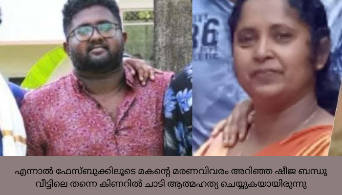 ഇതറിഞ്ഞ് അച്ഛനും ബന്ധുക്കളും ചേർന്ന് ഷീജയെ കഴക്കൂട്ടത്തുള്ള ബന്ധു വീട്ടിൽ ആക്കിയ ശേഷം മകന്റെ മൃതദേഹം ഏറ്റുവാങ്ങാൻ പോയതായിരുന്നു. ഷീജ മകന്റെ മരണവിവരം അറിഞ്ഞിരുന്നില്ല. എന്നാൽ ഫേസ്ബുക്കിലൂടെ മകന്റെ മരണവിവരം അറിഞ്ഞ ഷീജ ബന്ധു വീട്ടിലെ തന്നെ കിണറിൽ ചാടി ആത്മഹത്യ ചെയ്യുകയായിരുന്നു.