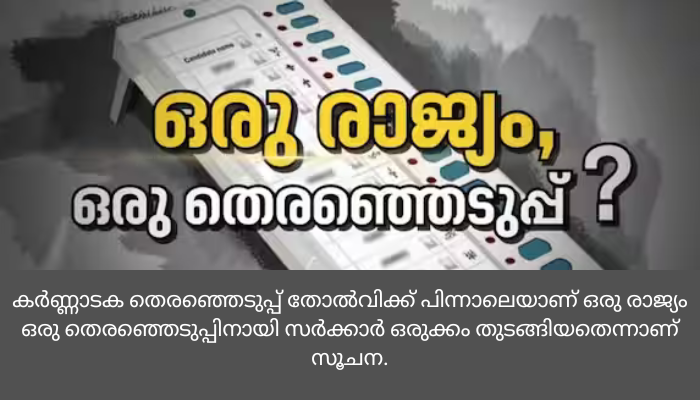 കര്ണ്ണാടക തെരഞ്ഞെടുപ്പ് തോല്വിക്ക് പിന്നാലെയാണ് ഒരു രാജ്യം ഒരു തെരഞ്ഞെടുപ്പിനായി സര്ക്കാര് ഒരുക്കം തുടങ്ങിയതെന്നാണ് സൂചന. ജൂണില് രാംനാഥ് കൊവിന്ദിനെ അമിഷായും പ്രധാനമന്ത്രിയുടെ പ്രിന്സിപ്പൽ സെക്രട്ടറിയും കണ്ട് ഇതിനായുള്ള പഠനം നടത്താന് നിര്ദ്ദേശിച്ചു. ഇതിന്റെ ഭാഗമായി പത്ത് ഗവര്ണ്ണര്മാരെയും, ഭരണഘടന വിദഗ്ധരെയും കണ്ട് രാംനാഥ് കൊവിന്ദ് ചര്ച്ച നടത്തിയിരുന്നുവെന്നാണ് റിപ്പോര്ട്ട്. പ്രാഥമിക നിരീക്ഷണം ഒരു പക്ഷേ പ്രത്യക സമ്മേളനത്തില് അവതരിപ്പിച്ചേക്കും.