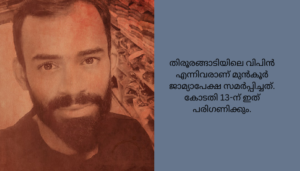 മഞ്ചേരി : താനൂർ കസ്റ്റഡിമരണക്കേസിൽ പ്രതികളായ പോലീസുദ്യോഗസ്ഥർ മഞ്ചേരി ജില്ലാ കോടതിയിൽ മുൻകൂർ ജാമ്യാപേക്ഷ സമർപ്പിച്ചു. ഒന്നുമുതൽ നാലുവരെ പ്രതികളായ താനൂർ പോലീസ് സ്റ്റേഷനിലെ സീനിയർ സിവിൽ പോലീസ് ഓഫീസർ ജിനേഷ്, പരപ്പനങ്ങാടിയിലെ സിവിൽ പോലീസ് ഓഫീസർ ആൽബിൻ അഗസ്റ്റിൻ, കൽപ്പകഞ്ചേരിയിലെ അഭിമന്യു, തിരൂരങ്ങാടിയിലെ വിപിൻ എന്നിവരാണ് മുൻകൂർ ജാമ്യാപേക്ഷ സമർപ്പിച്ചത്. കോടതി 13-ന് ഇത് പരിഗണിക്കും.