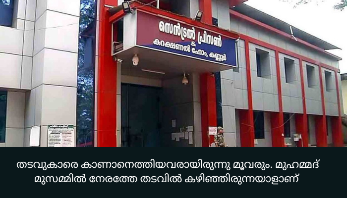 മുഹമ്മദ് മുസമ്മിലും രഞ്ജിത്തും തിങ്കളാഴ്ചയും സൈതലവി ചൊവ്വാഴ്ചയുമാണ് പിടിയിലായത്. തടവുകാരെ കാണാനെത്തിയവരായിരുന്നു മൂവരും. മുഹമ്മദ് മുസമ്മിൽ നേരത്തേ തടവിൽ കഴിഞ്ഞിരുന്നയാളാണ്