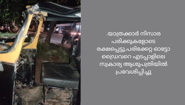 നായ മുന്നിൽ ചാടി യാത്രക്കാരുമായി പോയ ഓട്ടോ നിയന്ത്രണം വിട്ട് മറിഞ്ഞു ഓട്ടോ ഡ്രൈവർക്ക് പരിക്ക്