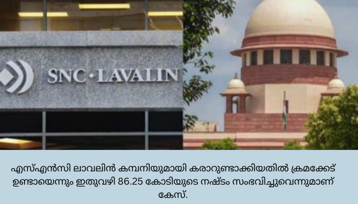 2017ല്‍ സുപ്രീംകോടതിയിലെത്തിയ കേസ് ആറ് വര്‍ഷത്തിനിടെ നാല് ബെഞ്ചുകളിലായി 35 തവണയാണ് ലിസ്റ്റ് ചെയ്യപ്പെട്ടത്. പന്നിയാര്‍, ചെങ്കുളം, പള്ളിവാസല്‍ ജല വൈദ്യുത പദ്ധതികളുടെ നവീകരണത്തിന് കാനഡയിലെ എസ്എന്‍സി ലാവലിന്‍ കമ്പനിയുമായി കരാറുണ്ടാക്കിയതില്‍ ക്രമക്കേട് ഉണ്ടായെന്നും ഇതുവഴി 86.25 കോടിയുടെ നഷ്ടം സംഭവിച്ചുവെന്നുമാണ് കേസ്.