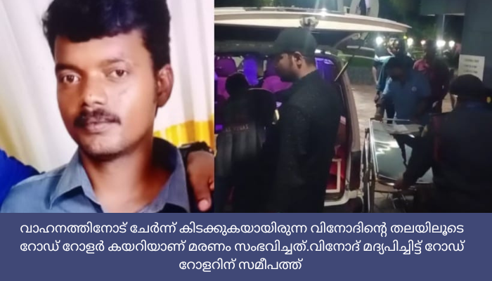 രാത്രിയിൽ റോഡ് പണിക്ക് വേണ്ടി കൊണ്ടുപോകുന്നതിനിടെ വാഹനത്തിനോട് ചേർന്ന് കിടക്കുകയായിരുന്ന വിനോദിന്റെ തലയിലൂടെ റോഡ് റോളർ കയറിയാണ് മരണം സംഭവിച്ചത്.വിനോദ് മദ്യപിച്ചിട്ട് റോഡ് റോളറിന് സമീപത്ത് കിടക്കുകയായിരുന്നുവെന്നാണ് പ്രാഥമിക നിഗമനം.