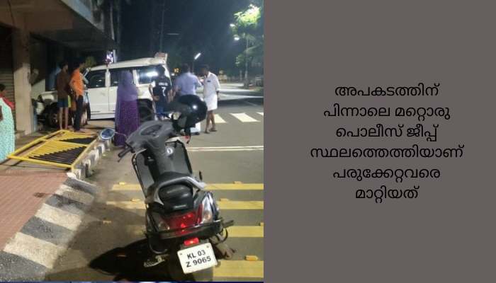 എന്താണ് അപകടകാരണമെന്ന് വ്യക്തമല്ല. അപകടത്തിന് പിന്നാലെ മറ്റൊരു പൊലീസ് ജീപ്പ് സ്ഥലത്തെത്തിയാണ് പരുക്കേറ്റവരെ മാറ്റിയത്. അമിത വേഗതയിലായിരുന്നു പൊലീസ് വാഹനമെന്ന് നാട്ടുകാർ പറയുന്നു