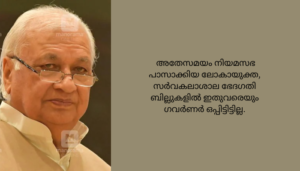 തിരുവനന്തപുരം : ആശുപത്രി സംരക്ഷണ ബില്ലിൽ ഗവർണർ ആരിഫ് മുഹമ്മദ് ഖാൻ ഒപ്പിട്ടു. ഒരാഴ്ച മുമ്പാണ് നിയമസഭ ബിൽ പാസാക്കി ഗവർണർക്ക് സമർപ്പിച്ചത്. ആരോഗ്യ പ്രവർത്തകർക്ക് എതിരായ അക്രമം തടയാനാണ് പുതിയ നിയമം. ഡോ. വന്ദന ദാസിന്റെ കൊലപാതകത്തിന് ശേഷമാണ് നിയമനിർമാണ നടപടികൾ സർക്കാർ വേഗത്തിലാക്കിയത്. അതേസമയം നിയമസഭ പാസാക്കിയ ലോകായുക്ത, സർവകലാശാല ഭേദഗതി ബില്ലുകളിൽ ഇതുവരെയും ഗവർണർ ഒപ്പിട്ടിട്ടില്ല.