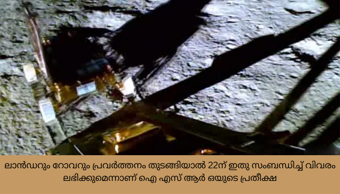 ലാന്‍ഡറും റോവറും പ്രവര്‍ത്തനം തുടങ്ങിയാല്‍ 22ന് ഇതു സംബന്ധിച്ച് വിവരം ലഭിക്കുമെന്നാണ് ഐ എസ് ആര്‍ ഒയുടെ പ്രതീക്ഷ. ന്യൂക്ലിയര്‍ ഹീറ്റിംഗ് സംവിധാനമൊന്നുമില്ലാതെ ചാന്ദ്ര രാത്രിയിലെ അതിശൈത്യം അതിജീവിക്കാന്‍ ലാന്‍ഡറിനായാല്‍ ഇന്ത്യന്‍ സാങ്കേതിക വിദ്യയുടെ മികവിന്റെ സാക്ഷ്യമാകും. 22 ആകുമ്പോഴേക്കും സാഹചര്യം അനുകൂലമാകുമെന്നാണ് ഇസ്രൊ കണക്കുകൂട്ടല്‍