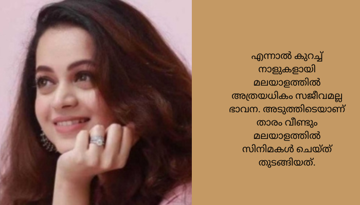 നിരവധി ഭാഷകളില്‍ അഭിനയിച്ച താരം മലയാളത്തിലെ ഒട്ടനവധി ത്രില്ലര്‍ ചിത്രങ്ങളിലും വേഷമിട്ടിരുന്നു. കിട്ടുന്ന കഥാപാത്രങ്ങളില്‍ ഗംഭീരമായ പ്രകടനം തന്നെയാണ് താരം കാഴ്ച്ചവെച്ചത്.ഇതിനാല്‍ തന്നെ ഭാവനക്ക് മലയാളത്തില്‍ നിരവധി അവസരങ്ങളും ലഭിച്ചു. നടിയായും സഹനടിയായും ഒക്കെയുള്ള തന്റെ അഭിനയത്തിനും ആരാധകര്‍ ഏറെയാണ്. മറ്റു ഭാഷകളിലേക്ക് ചേക്കേറിയപ്പോഴും മലയാള സിനിമയില്‍ ഭാവനയ്ക്ക് വലിയ സ്വീകാര്യതയുണ്ടായിരുന്നു. എന്നാല്‍ കുറച്ച് നാളുകളായി മലയാളത്തില്‍ അത്രയധികം സജീവമല്ല ഭാവന. അടുത്തിടെയാണ് താരം വീണ്ടും മലയാളത്തില്‍ സിനിമകള്‍ ചെയ്ത് തുടങ്ങിയത്.