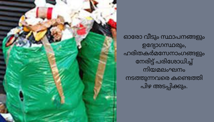 ഫ്ലാറ്റുകളിലുള്ള ഓരോ കുടുംബങ്ങളും വെവ്വേറെ ഹരിതകര്മസേനയില് രജിസ്റ്റര് ചെയ്ത് മാലിന്യങ്ങള് കൈമാറണം. ഹരിതകര്മസേനയില് രജിസ്റ്റര് ചെയ്താല് സേനാംഗങ്ങള് നിശ്ചയിച്ച തുക ഈടാക്കി ശേഖരിക്കും. ഓരോ വീടും സ്ഥാപനങ്ങളും ഉദ്യോഗസ്ഥരും, ഹരിതകര്മസേനാംഗങ്ങളും നേരിട്ട് പരിശോധിച്ച് നിയമലംഘനം നടത്തുന്നവരെ കണ്ടെത്തി പിഴ അടപ്പിക്കും.