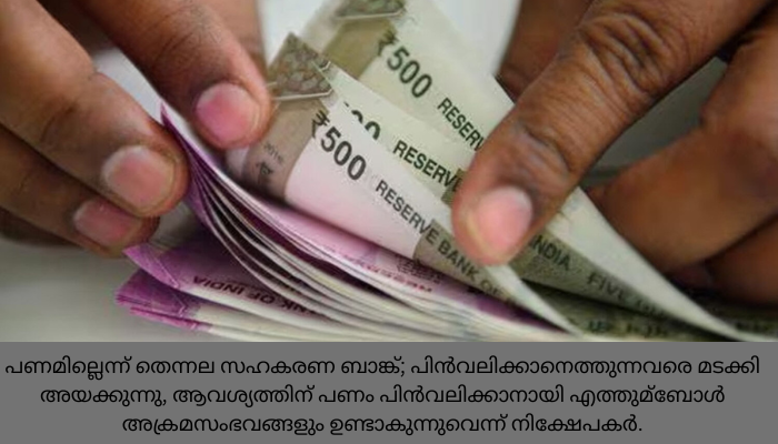 പണമില്ലെന്ന് തെന്നല സഹകരണ ബാങ്ക്; പിൻവലിക്കാനെത്തുന്നവരെ മടക്കി അയക്കുന്നു, ആവശ്യത്തിന് പണം പിൻവലിക്കാനായി എത്തുമ്ബോള്‍ അക്രമസംഭവങ്ങളും ഉണ്ടാകുന്നുവെന്ന് നിക്ഷേപകര്‍.