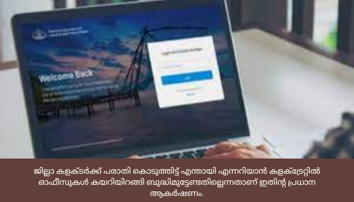 മലപ്പുറം ജില്ലയില് തുടക്കമാവുകയും പിന്നീട് സംസ്ഥാനം മുഴുവനായും നടപ്പിലാക്കുകയും ചെയ്ത ഇ-ഡിസ്ട്രിക്ട് പോര്ട്ടല് വഴിയാണ് പുതിയ സേവനവും നല്കി വരുന്നത്. നാഷണല് ഇൻഫര്മാറ്റിക്സ് സെന്ററും, കേരള സ്റ്റേറ്റ് ഐ.ടി മിഷനുമാണ് ജില്ലാ ഭരണകൂടത്തിനായി ഇ-ഡിസ്ട്രിക്ട് പോര്ട്ടലില് ഇതിനാവശ്യമായ ക്രമീകരണങ്ങള് ഒരുക്കിയത്. ഐ.ടി മിഷൻ മലപ്പുറം ജില്ലാ ഓഫീസാണ് വകുപ്പുകളിലെ ഉദ്യോഗസ്ഥര്ക്ക് ആവശ്യമായ പരിശീലനം ഉള്പ്പടെ സാങ്കേതിക സഹായം നല്കുന്നത്. ഒരു വര്ഷം മുമ്ബാണ് ജില്ലാ കളക്ടറുടെ ഓണ്ലൈൻ പൊതുജന പരാതി പരിഹാര സംവിധാനം കായിക വകുപ്പ് മന്ത്രി വി. അബ്ദുറഹിമാൻ ഉദ്ഘാടനം നിര്വഹിക്കുന്നത്. ജില്ലാ കളക്ടര്ക്ക് പരാതി കൊടുത്തിട്ട് എന്തായി എന്നറിയാൻ കളക്ട്രേറ്റില് ഓഫീസുകള് കയറിയിറങ്ങി ബുദ്ധിമുട്ടേണ്ടതില്ലെന്നതാണ് ഇതിന്റ പ്രധാന ആകര്ഷണം.