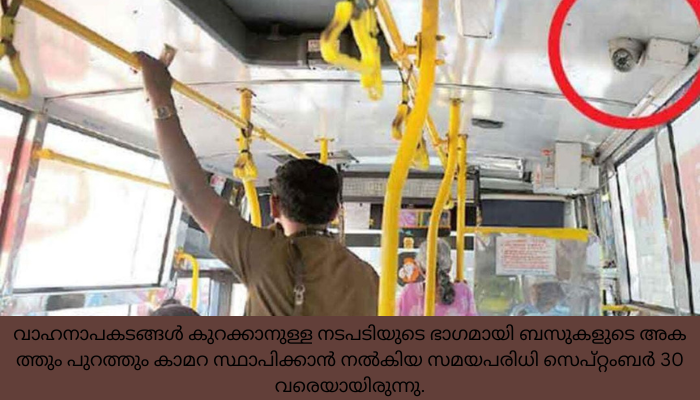 വാഹനാപകടങ്ങൾ കുറക്കാനുള്ള നടപടിയുടെ ഭാഗമായി ബസുകളുടെ അകത്തും പുറത്തും കാമറ സ്ഥാപിക്കാൻ നൽകിയ സമയപരിധി സെപ്റ്റംബർ 30 വരെയായിരുന്നു.
