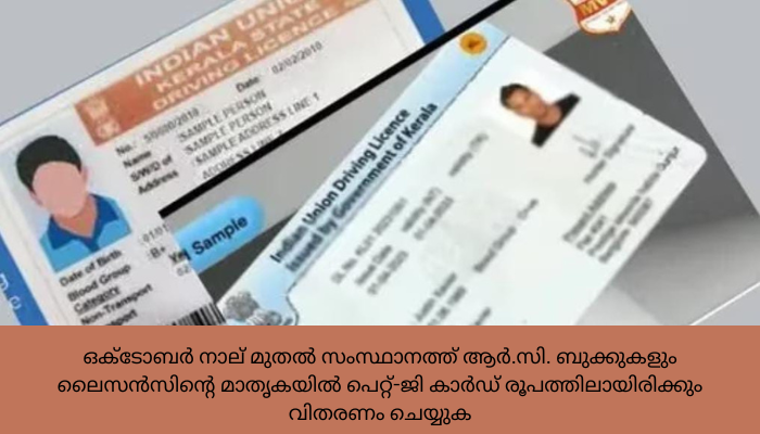 ഡ്രൈവിങ് ലൈസൻസിന് പിന്നാലെ വാഹനങ്ങളുടെ ആർ.സി. ബുക്കും ആർ.ടി. ഓഫീസിനോട് ‘സ്മാർട്ടായി’ വിട പറയുന്നു. ഒക്ടോബർ നാല് മുതൽ സംസ്ഥാനത്ത് ആർ.സി. ബുക്കുകളും ലൈസൻസിന്റെ മാതൃകയിൽ പെറ്റ്-ജി കാർഡ് രൂപത്തിലായിരിക്കും വിതരണം ചെയ്യുക. ഇതിനുള്ള സാങ്കേതിക നടപടിക്രമങ്ങളെല്ലാം പൂർത്തിയായതായി മോട്ടോർ വാഹനവകുപ്പ് അധികൃതർ വ്യക്തമാക്കി. ഇനി ലാമിനേറ്റഡ് കാർഡുകൾക്ക് പകരമായി എ.ടി.എം. കാർഡിന് സമാനമായി പേഴ്സിൽ സൂക്ഷിക്കാൻ കഴിയുന്ന രീതിയിലാണ് ആർ.സി. ബുക്ക് കൈയിൽ കിട്ടുക.
