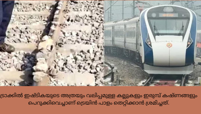 ഉദയ്പൂര് ജയ്പ്പൂര് വന്ദേഭാരത് എക്സ്പ്രസ് കടന്നുപോകുന്ന ട്രാക്കില് ഇഷ്ടികയുടെ അത്രയും വലിപ്പമുള്ള കല്ലുകളും ഇരുമ്പ് കഷ്ണങ്ങളും പെറുക്കിവെച്ചാണ് ട്രെയിന് പാളം തെറ്റിക്കാന് ശ്രമിച്ചത്.