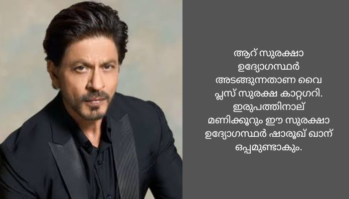 ബോളിവുഡില് നിന്ന് കിങ് ഖാനെ കൂടാതെ സല്മാന് ഖാനാണ് വൈ പ്ലസ് സുരക്ഷയുള്ളത്. അധോലോക ഗുണ്ടാ നേതാവ് ലോറന്സ് ബിഷ്ണോയി സംഘത്തിന്റെ ഭീഷണിയെ തുടര്ന്നാണ് സല്മാന് സുരക്ഷ കൂട്ടിയത്. അമിതാഭ് ബച്ചന്, ആമിര് ഖാന്, അക്ഷയ് കുമാര്, അനുപം ഖേര് എന്നിവര്ക്ക് എക്സ് സുരക്ഷയാണുള്ളത്. നേരത്തെ രണ്ട് പൊലീസുകാര് മാത്രമായിരുന്നു ഷാരൂഖ് ഖാനൊപ്പമുണ്ടായിരുന്നത്.