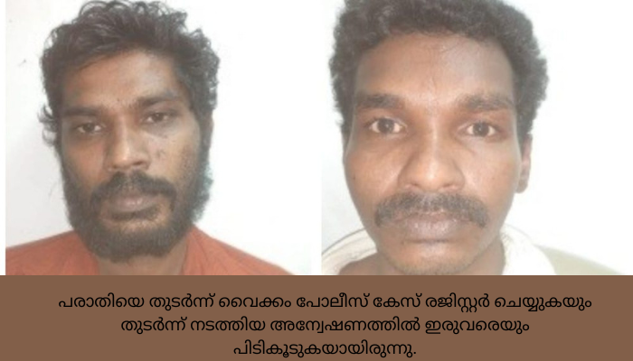 ഇവർ ഇരുവരും ചേർന്ന് കഴിഞ്ഞ ദിവസം രാത്രി 9:15 മണിയോടുകൂടി വഴിയിലൂടെ നടന്നു പോവുകയായിരുന്ന തോട്ടകം സ്വദേശിയായ യുവാവിനോട് പണം ചോദിക്കുകയും എന്നാൽ യുവാവ് പണം നൽകാതെ പോവുകയുമായിരുന്നു. ഇതിലുള്ള വിരോധം മൂലം ഇരുവരും ചേർന്ന് യുവാവിനെ പിന്തുടർന്ന് ആക്രമിക്കുകയും, പോക്കറ്റിൽ ഉണ്ടായിരുന്ന പണവും, മൊബൈൽ ഫോണും തട്ടിയെടുത്ത് കടന്നുകളയുകയുമായിരുന്നു. പരാതിയെ തുടർന്ന് വൈക്കം പോലീസ് കേസ് രജിസ്റ്റർ ചെയ്യുകയും തുടർന്ന് നടത്തിയ അന്വേഷണത്തിൽ ഇരുവരെയും പിടികൂടുകയായിരുന്നു.