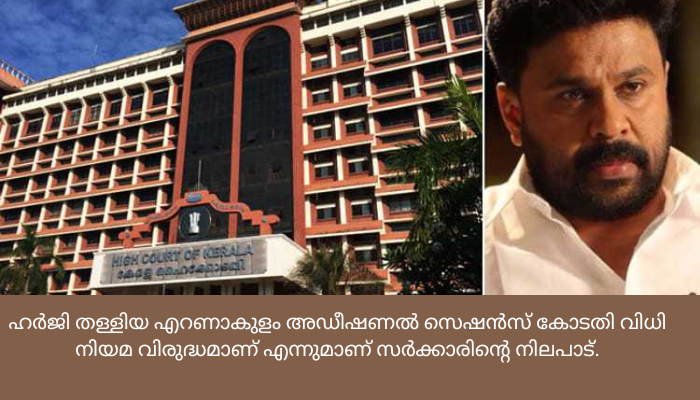 തെളിവുകള്‍ പരിശോധിക്കാതെയാണ് ക്രൈംബ്രാഞ്ചിൻ്റെ അപേക്ഷയില്‍ വിചാരണ കോടതി തീരുമാനമെടുത്തത്. ശബ്ദ സന്ദേശങ്ങള്‍ കോടതി പരിഗണിച്ചില്ല. ഹര്‍ജി തള്ളിയ എറണാകുളം അഡീഷണല്‍ സെഷന്‍സ് കോടതി വിധി നിയമ വിരുദ്ധമാണ് എന്നുമാണ് സര്‍ക്കാരിൻ്റെ നിലപാട്.