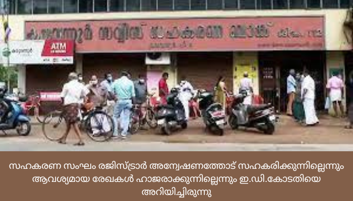റബ്കോ എം.ഡി.ഹരിദാസൻ നമ്പ്യാരോടും ഇന്ന് ഹാജരാകാൻ എൻഫോഴ്സ്മെന്റ് ഡയറക്ടറേറ്റ് ആവശ്യപ്പെട്ടിട്ടുണ്ട്. ഇരുവരോടും രാവിലെ 10 മണിക്ക് കൊച്ചി ഓഫീസിൽ ഹാജരാകാനാണ് നിർദേശം. സഹകരണ സംഘം രജിസ്ട്രാർ അന്വേഷണത്തോട് സഹകരിക്കുന്നില്ലെന്നും ആവശ്യമായ രേഖകൾ ഹാജരാക്കുന്നില്ലെന്നും ഇ.ഡി.കോടതിയെ അറിയിച്ചിരുന്നു. കരുവന്നൂരിൽ വലിയ തട്ടിപ്പ് നടന്നിട്ടും രജിസ്ട്രാർ ഇടപെടാത്തത് ദുരൂഹമാണെന്നാണ് ഇ.ഡി.യുടെ വിലയിരുത്തൽ. കരുവന്നൂർ ബാങ്ക് വഴിയുള്ള ഇടപാടിൽ റബ്ക്കോ എം.ഡി.ക്കും പങ്കുണ്ടെന്ന സംശയത്തിന്റെ അടിസ്ഥാനത്തിലാണ് ഹരിദാസൻ നമ്പ്യാരെ ചോദ്യം ചെയ്യാനുള്ള തീരുമാനം
