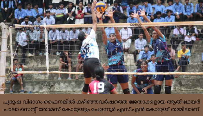വനിതാ ഫൈനൽ ഇന്ന് രാവിലെ 8 മണിക്കും പുരുഷന്മാരുടെ കലാശപോരാട്ടം ഉച്ചകഴിഞ്ഞു മൂന്ന് മണിക്കും ആരംഭിക്കുന്നതാണ്. വനിതാ വിഭാഗം ഫൈനലിൽ കാതോലിക്കേറ്റ് കോളേജ് പത്തനംതിട്ടയും സെന്റ് ജോസഫ് കോളേജ് ഇരിങ്ങാലക്കുടിയും തമ്മിലും, പുരുഷ വിഭാഗം ഫൈനലിൽ കഴിഞ്ഞവർഷത്തെ ജേതാക്കളായ ആതിഥേയർ പാലാ സെന്റ് തോമസ് കോളേജും ചേളന്നൂർ എസ്.എൻ കോളേജ് തമ്മിലാണ്