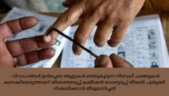 ഡിസംബർ മൂന്നിന് തന്നെ തിരഞ്ഞെടുപ്പ് ഫലം പ്രഖ്യാപിക്കും. വിവാഹങ്ങൾ ഉൾപ്പെടെ ആളുകൾ ഒത്തുകൂടുന്ന നിരവധി ചടങ്ങുകൾ കണക്കിലെടുത്താണ് തിരഞ്ഞെടുപ്പ് കമ്മീഷൻ വോട്ടെടുപ്പ് തീയതി പുതുക്കി നിശ്ചയിക്കാൻ തീരുമാനിച്ചത്.