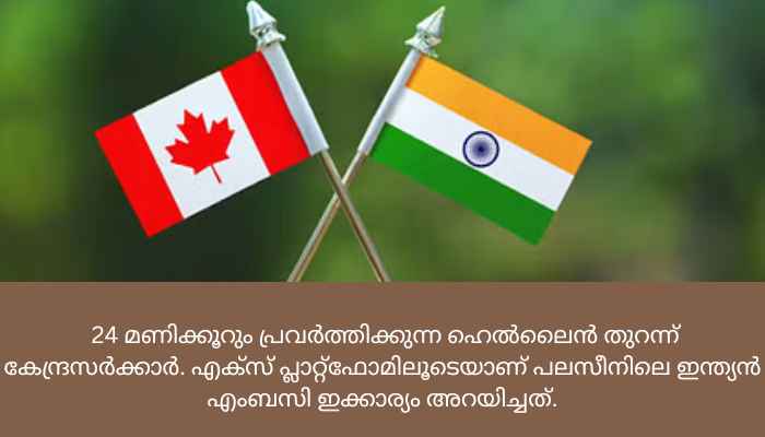 ന്യൂഡൽഹി: ഹമാസിനെതിരേ ഇസ്രയേൽ യുദ്ധം തുടരുന്ന സാഹചര്യത്തിൽ 24 മണിക്കൂറും പ്രവർത്തിക്കുന്ന ഹെൽലൈൻ തുറന്ന് കേന്ദ്രസർക്കാർ. എക്സ് പ്ലാറ്റ്ഫോമിലൂടെയാണ് പലസീനിലെ ഇന്ത്യൻ എംബസി ഇക്കാര്യം അറയിച്ചത്.