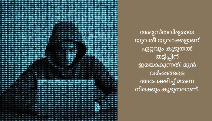 തിരുവനന്തപുരം : സംസ്ഥാനത്ത് സൈബർ കുറ്റകൃത്യങ്ങൾ പെരുകുന്നു. 2016 മുതൽ 2023 വരെയുള്ള കണ്ക്ക് അനുസരിച്ച് കേസുകളുടെ എണ്ണത്തിൽ വൻ വർദ്ധനവാണ് ഉണ്ടായിട്ടുള്ളത്. ലോൺ ആപ്പ്, ഓൺലൈൻ ജോബ്, ബാങ്ക് അക്കൗണ്ട് കയ്‌വശപ്പെടുത്തിയുള്ള തട്ടിപ്പ് എന്നിവയാണ് കൂടുതൽ റിപ്പോർട്ട് ചെയ്യുന്നത്. അഭ്യസ്തവിദ്യരായ യുവതീ യുവാക്കളാണ് ഏറ്റവും കൂടുതൽ തട്ടിപ്പിന് ഇരയാകുന്നത്. മുൻ വർഷങ്ങളെ അപേക്ഷിച്ച് മരണ നിരക്കും കൂടുതലാണ്.