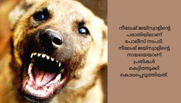 നായയുടെ ഉടമ വ്യാപാരിയായ നീലേഷ് ജയ്സ്വാളിന്റെ പരാതിയിലാണ് പോലീസ് നടപടി. നീലേഷ് ജയ്സ്വാളിന്റെ നായയെയാണ് പ്രതികൾ കെട്ടിത്തൂക്കി കൊലപ്പെടുത്തിയത്.