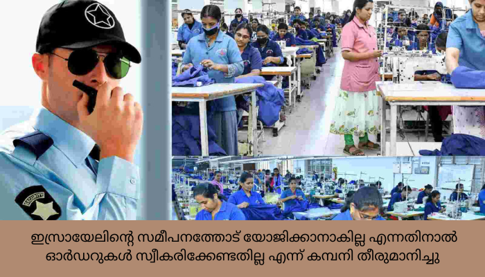 ഇസ്രയേൽ പോലീസ് ഉൾപ്പെടെ വിവിധ രാജ്യങ്ങളിലേക്ക് യൂണിഫോം നിർമ്മിച്ചു നൽകുന്ന കണ്ണൂരിലെ പ്രമുഖ വസ്ത്രനിർമ്മാണ കമ്പനിയായ മരിയൻ അപ്പാരൽസ് വാർത്തകളിൽ നിറഞ്ഞു നിൽക്കുകയായിരുന്നു. ആശുപത്രികളിൽ ഉൾപ്പെടെ ബോംബ് വർഷിച്ച് നിരപരാധികളെ കൊന്നൊടുക്കുന്ന സമീപനത്തോട് ധാർമ്മിക വിയോജിപ്പുള്ളതിനാൽ, സമാധാനം പുന:സ്ഥാപിക്കുന്നതു വരെ ഇസ്രയേലിൽ നിന്നുള്ള ഓർഡറുകൾ സ്വീകരിക്കേണ്ടതില്ല എന്ന് മരിയൻ അപ്പാരൽസ് ഇപ്പോൾ തീരുമാനിച്ചിരിക്കുകയാണ്. ഇക്കാര്യം വ്യക്തമാക്കി പത്രക്കുറിപ്പും നൽകിയിട്ടുണ്ട്