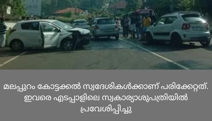 എടപ്പാൾ: ചൂണ്ടൽ കുറ്റിപ്പുറം സംസ്ഥാന പാതയിൽ മാണൂരിൽ കാറുകൾ തമ്മിൽ കൂട്ടിയിടിച്ചുണ്ടായ അപകടത്തിൽ മൂന്ന് പേർക്ക് പരിക്കേറ്റു.മലപ്പുറം കോട്ടക്കൽ സ്വദേശികൾക്കാണ് പരിക്കേറ്റത്. ഇവരെ എടപ്പാളിലെ സ്വകാര്യാശുപത്രിയിൽ പ്രവേശിപ്പിച്ചു.ഞായറാഴ്ച കാലത്ത് 9.30 തിനോടെയായിരുന്നു അപകടം