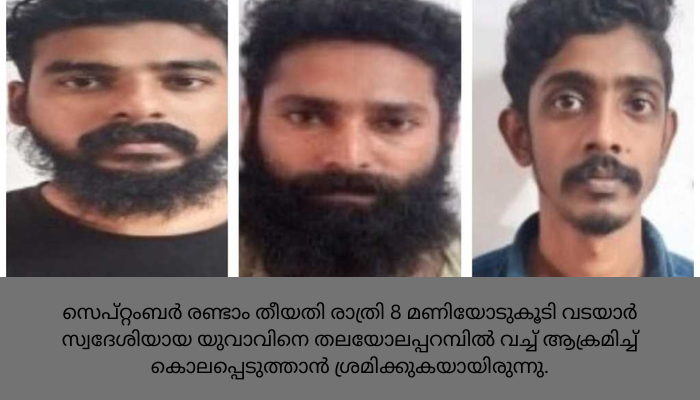 യുവാവിനെ ആക്രമിച്ച് കൊലപ്പെടുത്താൻ ശ്രമിച്ച കേസിൽ മൂന്നു പേരെ പോലീസ് അറസ്റ്റ് ചെയ്തു