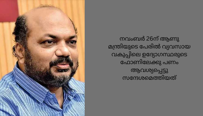 തിരുവനന്തപുരം: മന്ത്രി പി.രാജീവിന്റെ ചിത്രം ഉപയോഗിച്ചു വ്യാജ വാട്സാപ് അക്കൗണ്ട് ഉണ്ടാക്കി ഉദ്യോഗസ്ഥരെ കബളിപ്പിച്ചു പണം തട്ടാൻ ശ്രമം. മന്ത്രിയുടെ അഡീഷനൽ പ്രൈവറ്റ് സെക്രട്ടറി നൽകിയ പരാതിയിൽ സൈബർ ക്രൈം പൊലീസ് കേസെടുത്ത് അന്വേഷണമാരംഭിച്ചു. നവംബർ 26ന് ആണു മന്ത്രിയുടെ പേരിൽ വ്യവസായ വകുപ്പിലെ ഉദ്യോഗസ്ഥരുടെ ഫോണിലേക്കു പണം ആവശ്യപ്പെട്ടു സന്ദേശമെത്തിയത്.