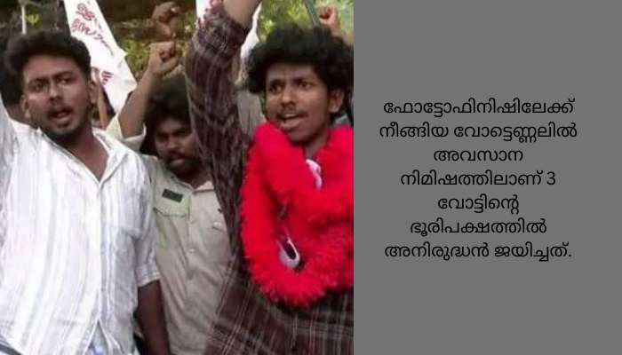കെഎസ്യു സ്ഥാനാര്ത്ഥി ശ്രീക്കുട്ടൻ 889 വോട്ടും എസ്എഫ്ഐ സ്ഥാനാര്ത്ഥി കെഎസ് അനിരുദ്ധൻ 892 വോട്ടും നേടി.