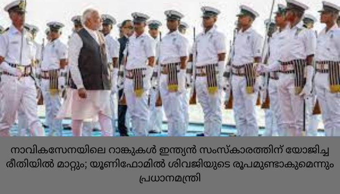 രാജ്യത്തിന്റെ സംസ്കാരത്തിന് യോജിച്ച രീതിയിൽ ഇന്ത്യൻ നാവികസേനയിൽ റാങ്കുകൾ പുനർനാമകരണം ചെയ്യുമെന്ന് പ്രധാനമന്ത്രി നരേന്ദ്ര മോദി. സേനയിൽ സ്ത്രീകളുടെ എണ്ണം വർദ്ധിപ്പിക്കാൻ കേന്ദ്ര സർക്കാർ പ്രതിജ്ഞാബദ്ധരാണെന്നും അദ്ദേഹം പറഞ്ഞു. നാവികസേനാ ദിനത്തിന്റെ ഭാഗമായി മഹാരാഷ്ട്രയിലെ മാൽവാനിൽ സംഘടിപ്പിച്ച പരിപാടിയിൽ സംസാരിക്കുകയായിരുന്നു അദ്ദേഹം