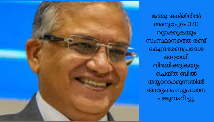 ജമ്മു-കശ്മീരിൽ അനുച്ഛേദം 370 റദ്ദാക്കുന്ന ബിൽ തയ്യാറാക്കുന്നതിൽ സുപ്രധാന പങ്കുവഹിച്ചു.