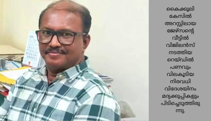അറസ്റ്റ് ചെയ്തതിന് പിന്നാലെ ജോലിയില് നിന്ന് സസ്പെന്ൻറ് ചെയതിരുന്നു. . ജേഴ്സനൊപ്പം പിടിയിലായ ഏജന്സ് രാമപ്പടിയാര്ക്കും രണ്ടാം പ്രതി സജേഷിനും കോടതി ജാമ്യം അനുവദിച്ചിട്ടുണ്ട്.