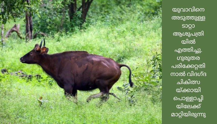 റോഡിലൂടെ നടന്നുപോകുമ്പോള്‍ ഓടിവന്ന കാട്ടുപോത്ത് യുവാവിനെ ഇടിച്ചു തെറിപ്പിച്ചു.