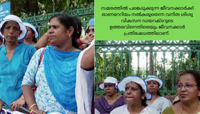 തിരുവനന്തപുരം| സെക്രട്ടറിയേറ്റ് പടിക്കല്‍ അങ്കണവാടി ജീവനക്കാർ അനിശ്ചിതകാല രാപ്പകല്‍ സമരം തുടങ്ങി. മിനിമം കൂലി 21000 രൂപ ആക്കണം, കുടിശ്ശികയായ ക്ഷേമനിധി ആനുകൂല്യം വിതരണം ചെയ്യണം, വിരമിക്കല്‍ ആനുകൂല്യം വേണം എന്നതടക്കമുള്ള ആവശ്യം ഉന്നയിച്ചാണ് സമരം. സമരത്തില്‍ പങ്കെടുക്കുന്ന ജീവനക്കാര്‍ക്ക് ഓണറേറിയം നല്‍കരുതെന്ന വനിത ശിശു വികസന ഡയറക്ടറുടെ ഉത്തരവിനെതിരെയും ജീവനക്കാര്‍ പ്രതിഷേധത്തിലാണ്.