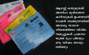തൃശ്ശൂർ ജില്ലയിൽ റേഷൻ കാർഡ്: 1163 അനർഹരെ പൊതുവിഭാഗത്തിലേക്ക് മാറ്റി; കാർഡുകള് മാറ്റുന്നതിനുള്ള അവസാന തീയതി വെള്ളിയാഴ്ച (ജൂലൈ 31) Read More