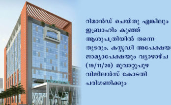 ഇബ്രാഹിം കുഞ്ഞിനെ 14 ദിവസത്തേക്ക് റിമാൻഡ് ചെയ്തു , ആശുപത്രിയിൽ തന്നെ തുടരും
