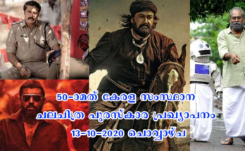 50-ാമത് കേരള സംസ്ഥാന ചലചിത്ര പുരസ്കാര പ്രഖ്യാപനം 13 -10 -2020 ഉച്ചയ്ക്ക് 12ന്